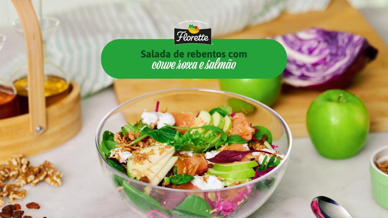 Salada de rebentos com couve roxa e salmão